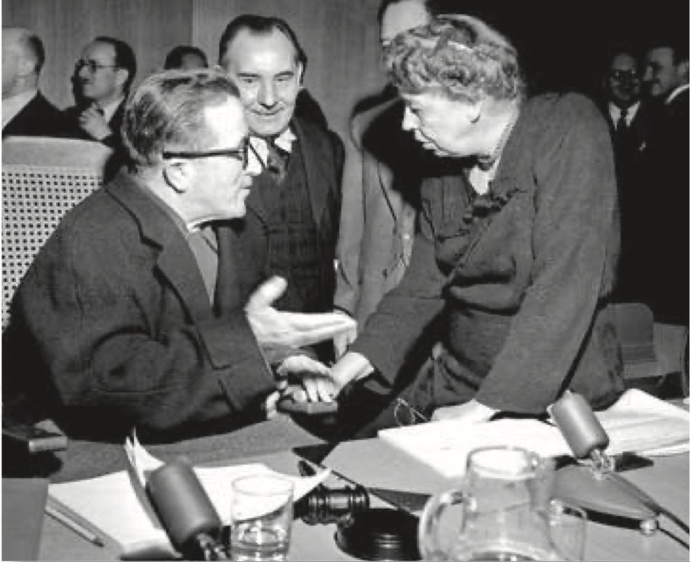 Eleanor proved to be a dedicated and indefatigable chair. She demonstrated a keen appreciation for the cultural and political differences represented across the spectrum of nuclear commission members, which included representatives from Norway, France, Belgium, Yugoslavia, Peru, China, India, and the USSR (now Russia). Eleanor brought the same level of diplomacy to the full eighteen-member human rights commission. She maintained an exhaustive schedule of travel, meetings, and review of draft documents.